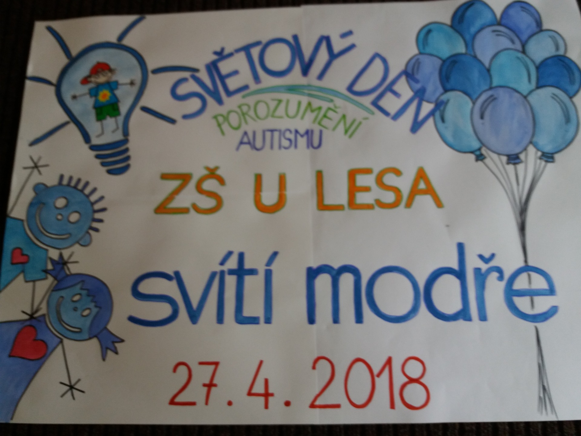 Duben je měsíc porozumění Autismu. I my tyto jedince podpoříme. V pátek 27. 4. 2018 proběhne pod záštitou Dobrodiní o.p.s. akce pod názvem "ZŠ U Lesa svítí modře".