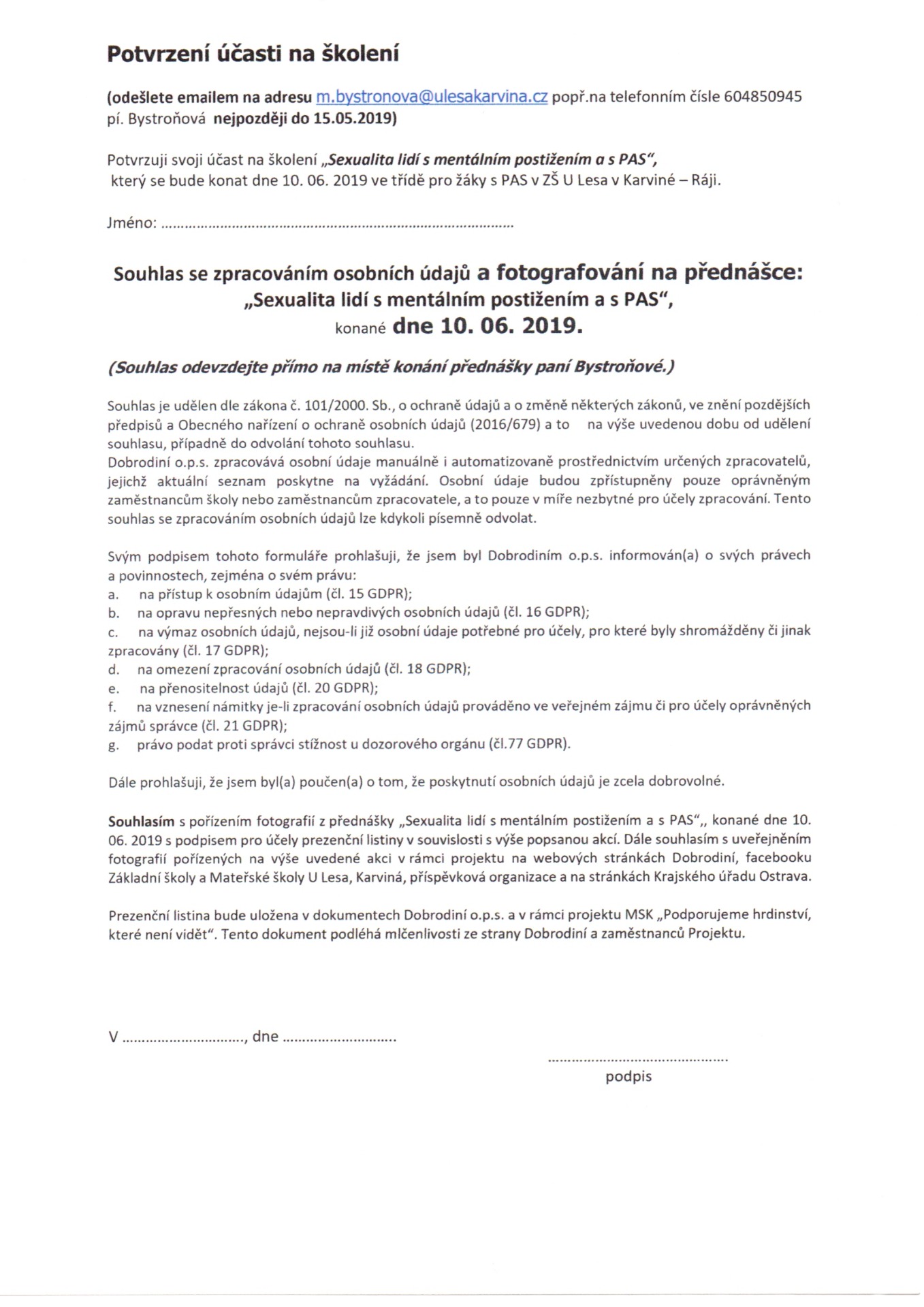 - Školení na téma "Sexualita a vztahy u lidí s PAS"