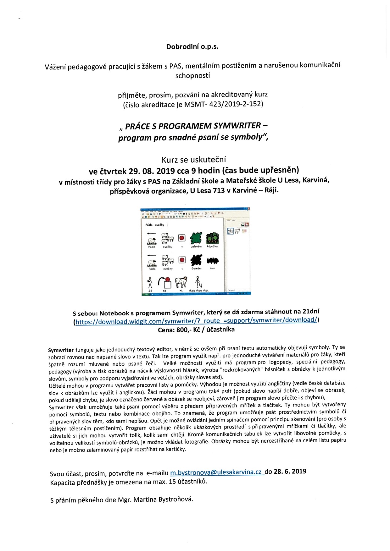 - Akreditovaný kurz "Práce s programem Symwriter - program pro snadné psaní se symboly"