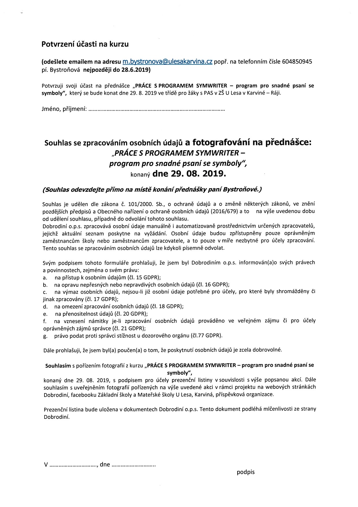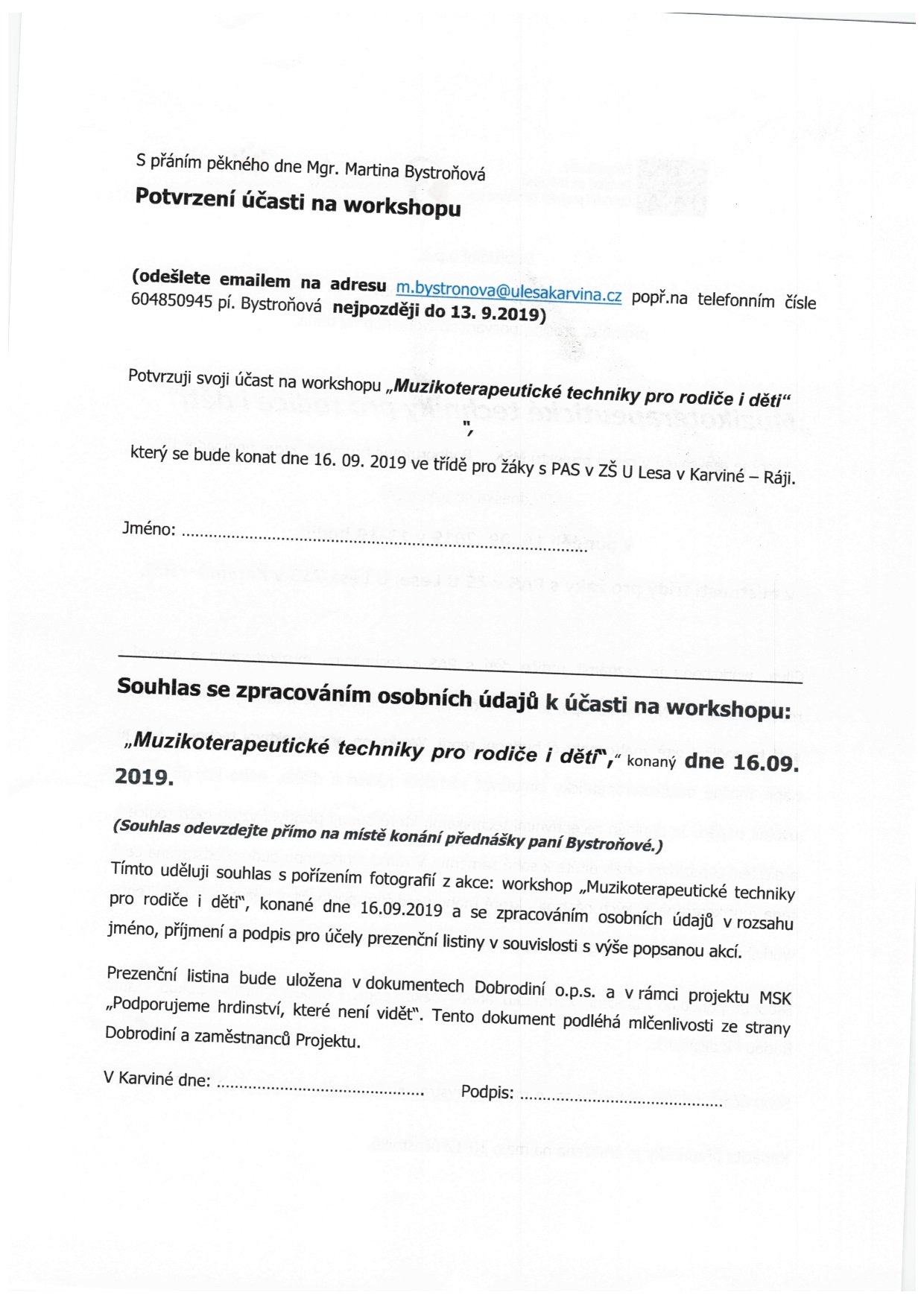 kurz se uskuteční 29. 8. 2019 na ZŠ a MŠ U Lesa v Karviné