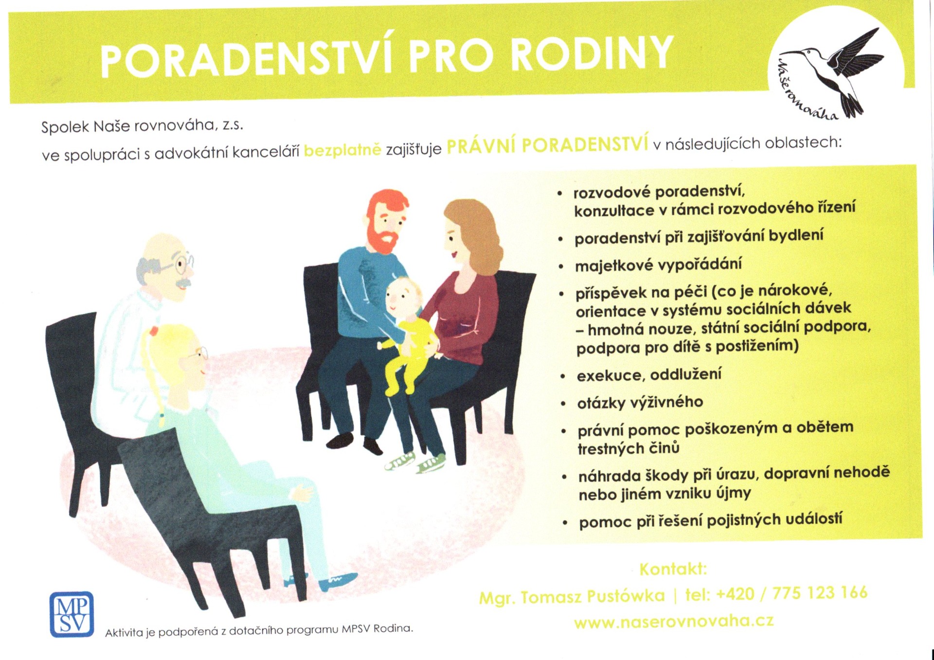 Spolek "Naše rovnováha" ve spolupráci s advokátní kanceláří nabízí právní poradenství zdarma pro rodiny, které pečují o dítě s postižením.