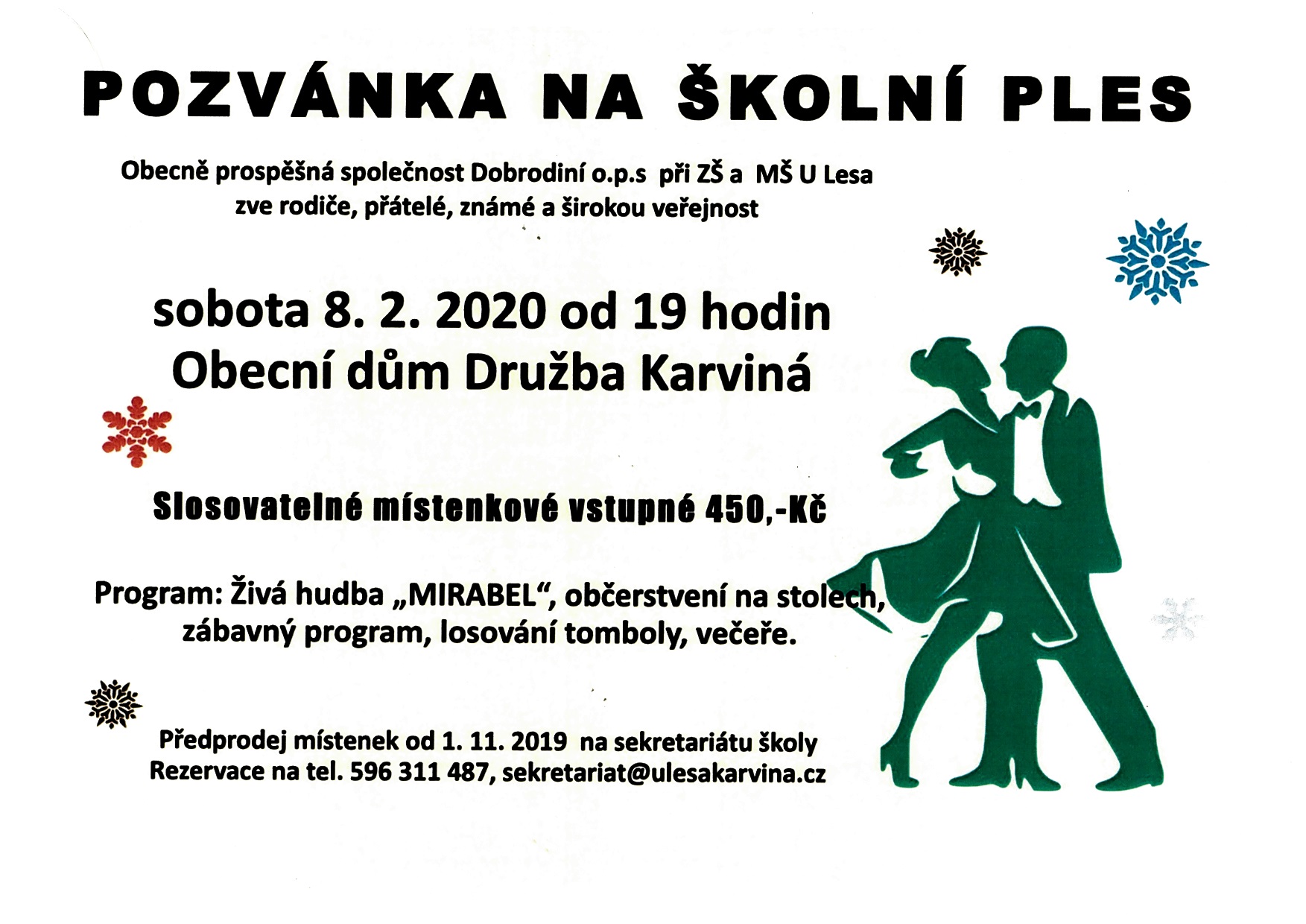Z technických důvodů se ples, který se měl konat 2. 2. 2019 ruší. Děkujeme za pochopení.