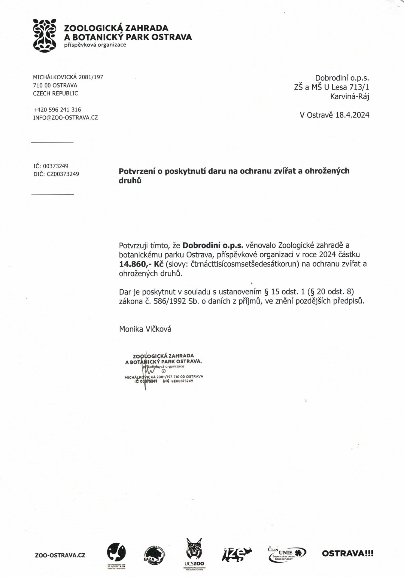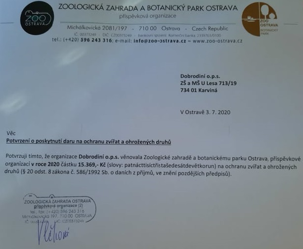 Děkujeme za Vaši laskavou pomoc a podporu. Za celou Zoo Ostrava zdraví