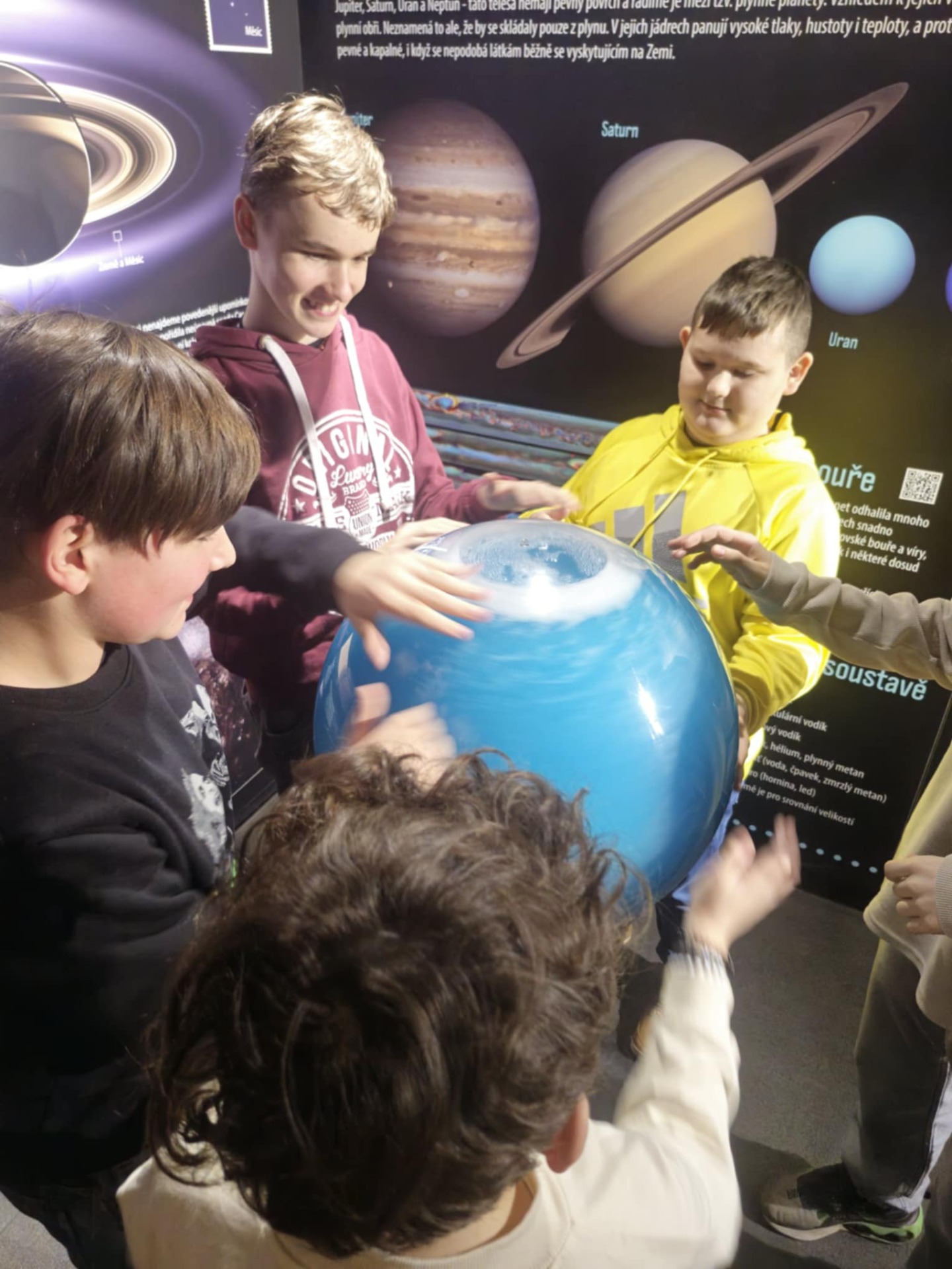 Za finanční podpory Dobrodiní o.p.s. se dne 13.10. 2023 žáci pátých ročníků podívali do Planetária v Ostravě, kde se seznámili s planetami Vesmíru. Prohlédli si expozice a vyzkoušeli si, jak vzniká tornádo, odliv a příliv, malování v písku, pohyb planet, jak vypadá jejich povrch. Dozvěděli se mnoho nových informacích týkajících se našeho Vesmíru. Děkujeme pracovníkům Planetária za skvělý zážitek.